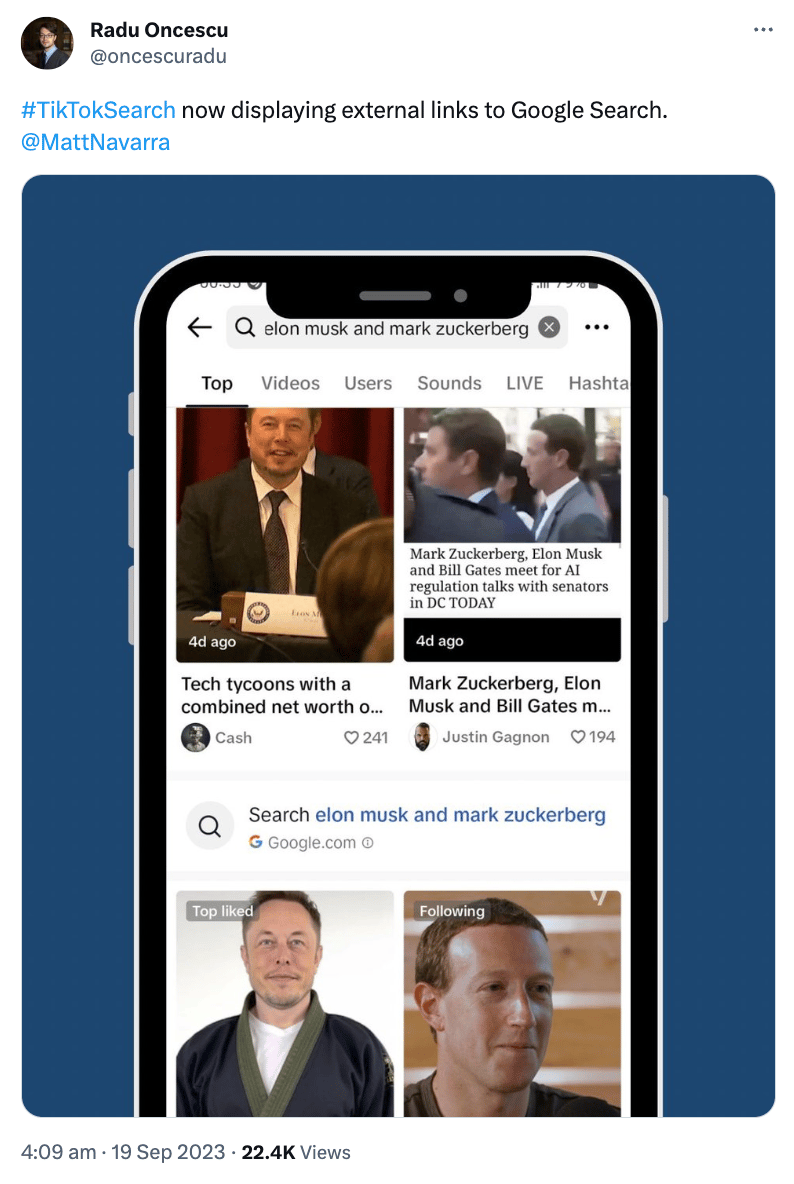 Google is aiming to make their search engine more visual and part of that has been the inclusion of TikTok videos in their results. And now we see the partnership working the other way, with TikTok potentially driving more traffic to Google.